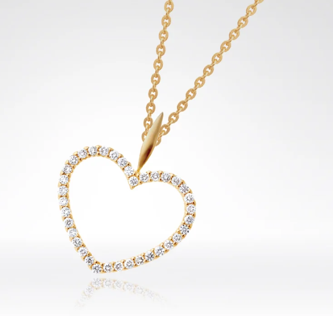 This elegant necklace is crafted in radiant 18K yellow gold and adorned with sparkling diamonds, creating a timeless design that beautifully balances romance and sophistication—perfect for everyday elegance or meaningful occasions.