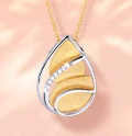 Tap into your innermost joy each time you wear the Golden Cove Diamond Pendant from Bernhard H. Mayer®. This enchanting pendant features 18K yellow gold petals delicately held inside a beautifully crafted 18K white gold teardrop frame that is decked with 0.05 carat diamonds.