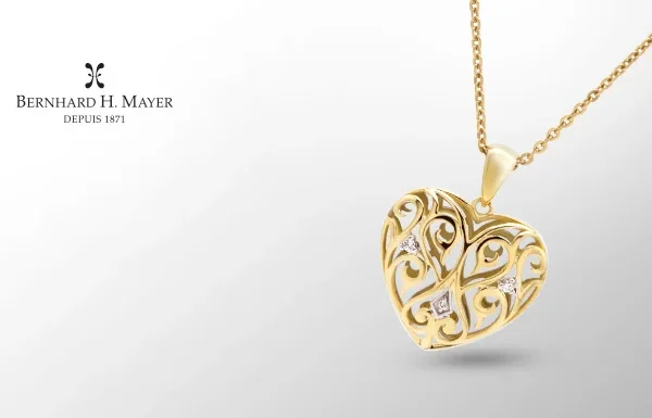 This elegant necklace is crafted in radiant 18K yellow gold and adorned with sparkling diamonds, creating a timeless design that beautifully balances romance and sophistication—perfect for everyday elegance or meaningful occasions.